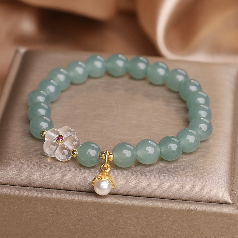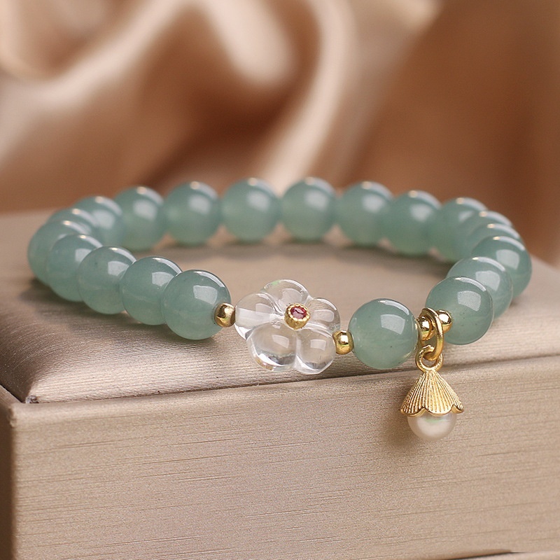 Blue Water Jade White Crystal Flower Bracelet For Women 12