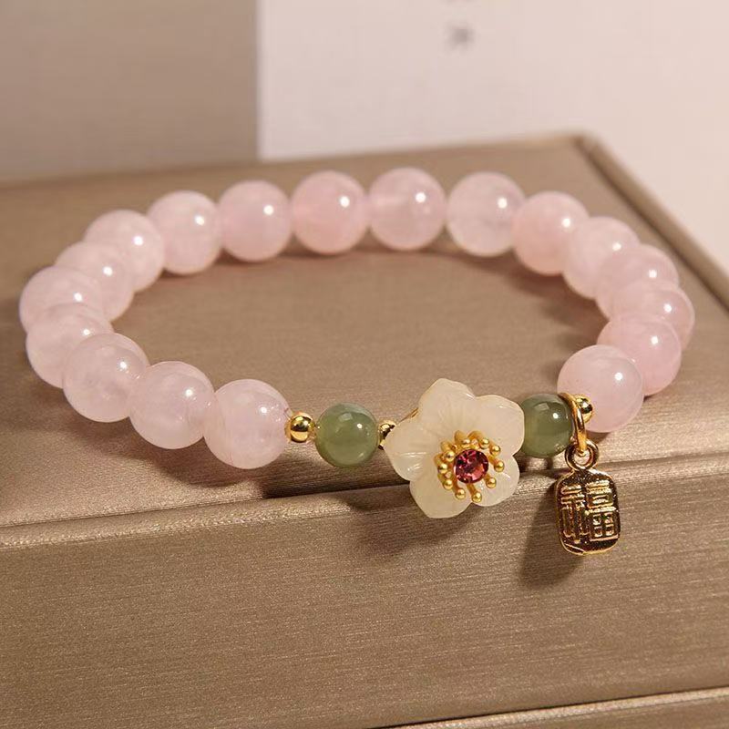 Crystal Hetian Jade Beaded Peach Blossom National Style Bracelet 13