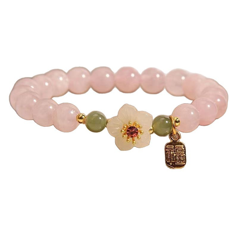 Crystal Hetian Jade Beaded Peach Blossom National Style Bracelet 13